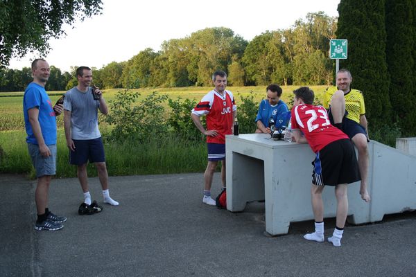 Beim Spiel gegen das von Chris zusammengestellte Studententeam setzte sich unser Aufwärtstrend fort. Mit einem tadellos haltenden Sascha im Tor und einer bärenstarken Innenverteidigung, legten wir den Grundstein zu einem ungefährdeten 5:0 Heimsieg. Trotz einer Vielzahl von Großchancen gelang uns in der ersten Halbzeit nur ein Tor durch Manu. Nach dem Wechsel fielen dann die Tore wie am Fließband. Matthias (mit zwei sehenswerten Kopfballtoren), Alin und nochmals Manu stellten, den deutlichen Endstand sicher. Chris blieb trotz zweier Großchancen sein Geburtstagstor verwehrt. Schiri Franz hatte mit der fairen Begegnung keine Probleme. Im Anschluss wurde vor unseren Umkleidekabinen noch gemütlich gegrillt und auf das faire Spiel angestossen.