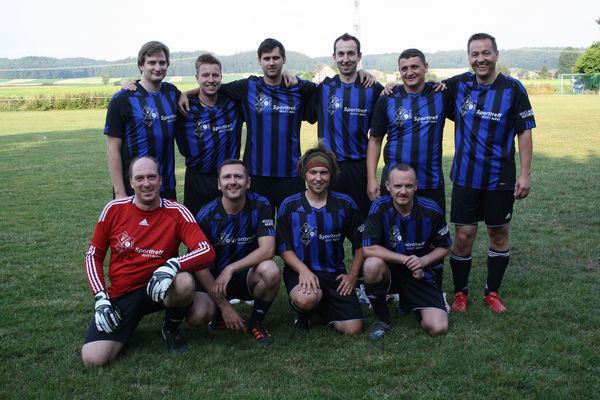 Nach der kurzfristigen Absage von drei Spielern, standen wir kurz vor Anpfiff des AH-Turnieres in Au ohne Torwart und nur mit einem Auswechselspieler da. Eric ging dann kurzerhand ins Tor und machte seine Sache richtig gut. Ab dem 3. Spiel verstärkte uns dann Katsche vom FC 19 Ulm. Mit nur einem Auswechselspieler mussten wir uns leider in allen drei Gruppenspielen unseren Gegnern mit einem Tor Unterschied geschlagen geben und erreichten dadurch nur das Spiel um Platz 7 und 8. Hier kam es dann gegen die Jungs von Real Biberachzell wieder zu einem Derby. Nach der regulären Spielzeit stand es 2:2, so dass das Neunmeterschießen die Entscheidung bringen musste. Hier erwiesen sich alle unsere Schützen und unser Torwart Katsche als nervenstark. Mit 6:4 n.N. wurden die Biberachzeller auf den letzten Platz verwiesen. Insgesamt ein tolles Turnier bei dem mit unserer regulären Besetzung viel mehr drin gewesen wäre. Unsere sieben Tore erzielten Orhan (3), Alex, Chris, Eric und Claus.